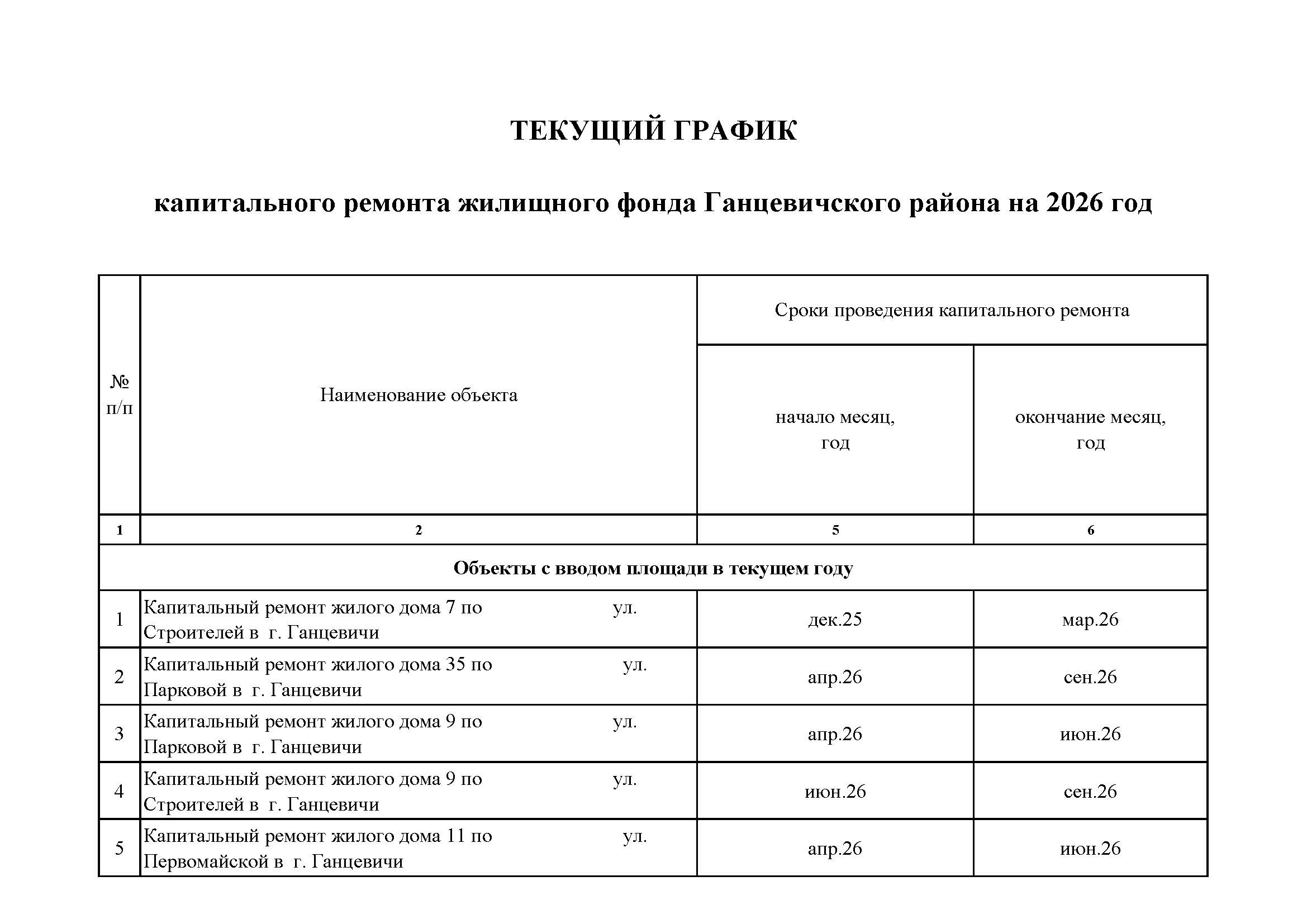 График капитального ремонта жилого фонда