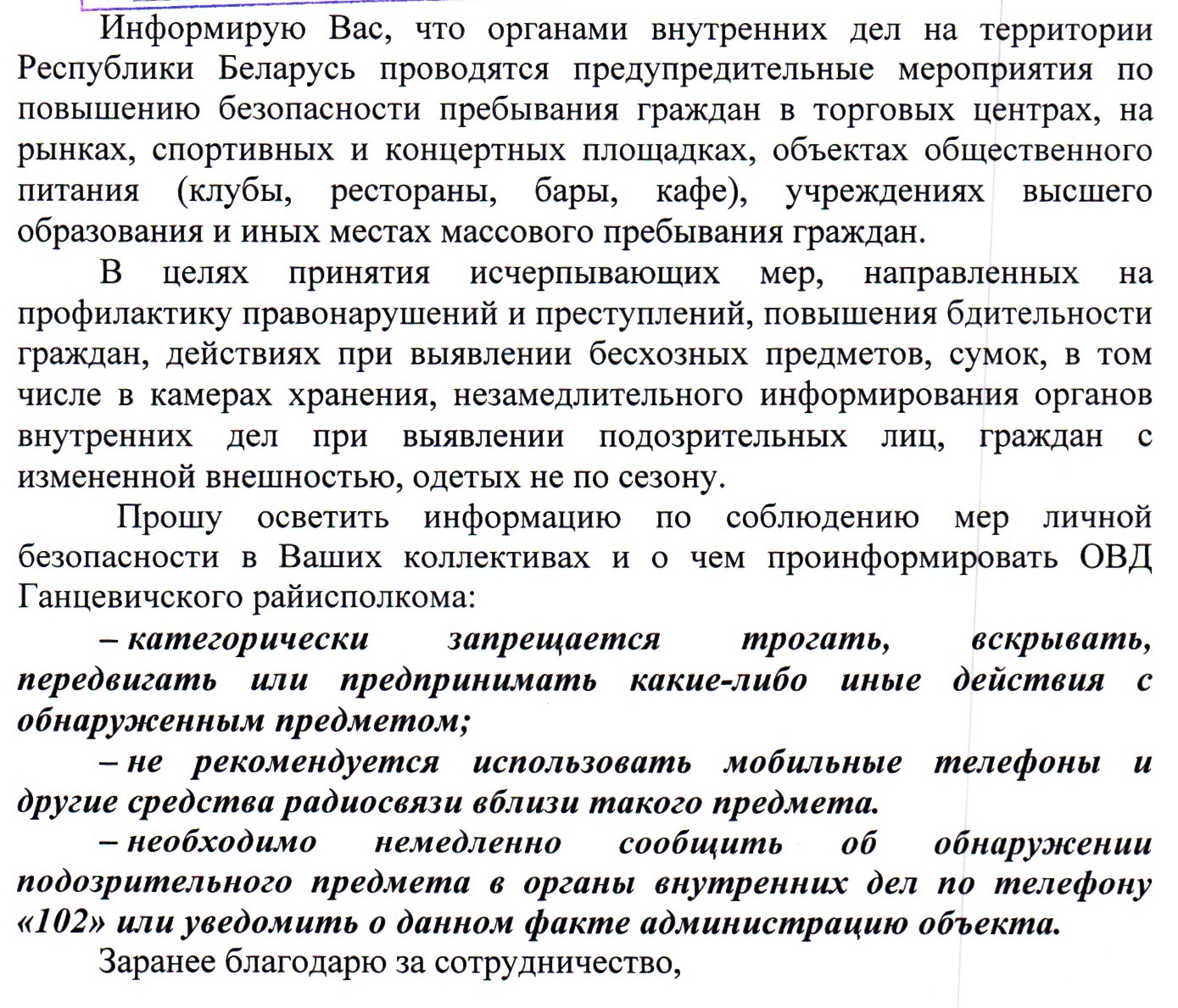 При несоблюдении данных правил Вы можете быть привлечены к административной ответственности и наложению штрафа в размере от 10 до 30 базовых величин.