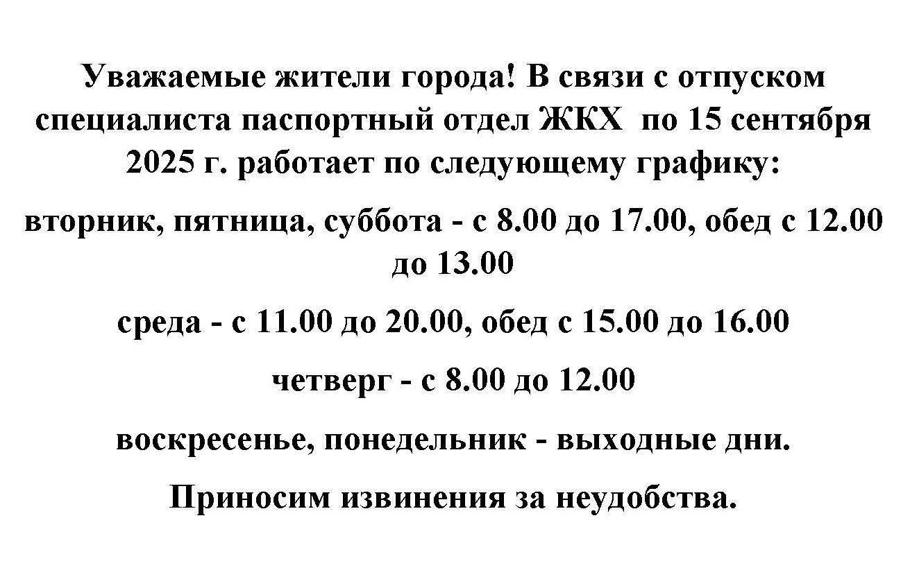 паспортный отдел Ганцевичского РЖКХ по улице Октябрьской, 50А с 17.09 по 06.10 будет работать по следующему графику: