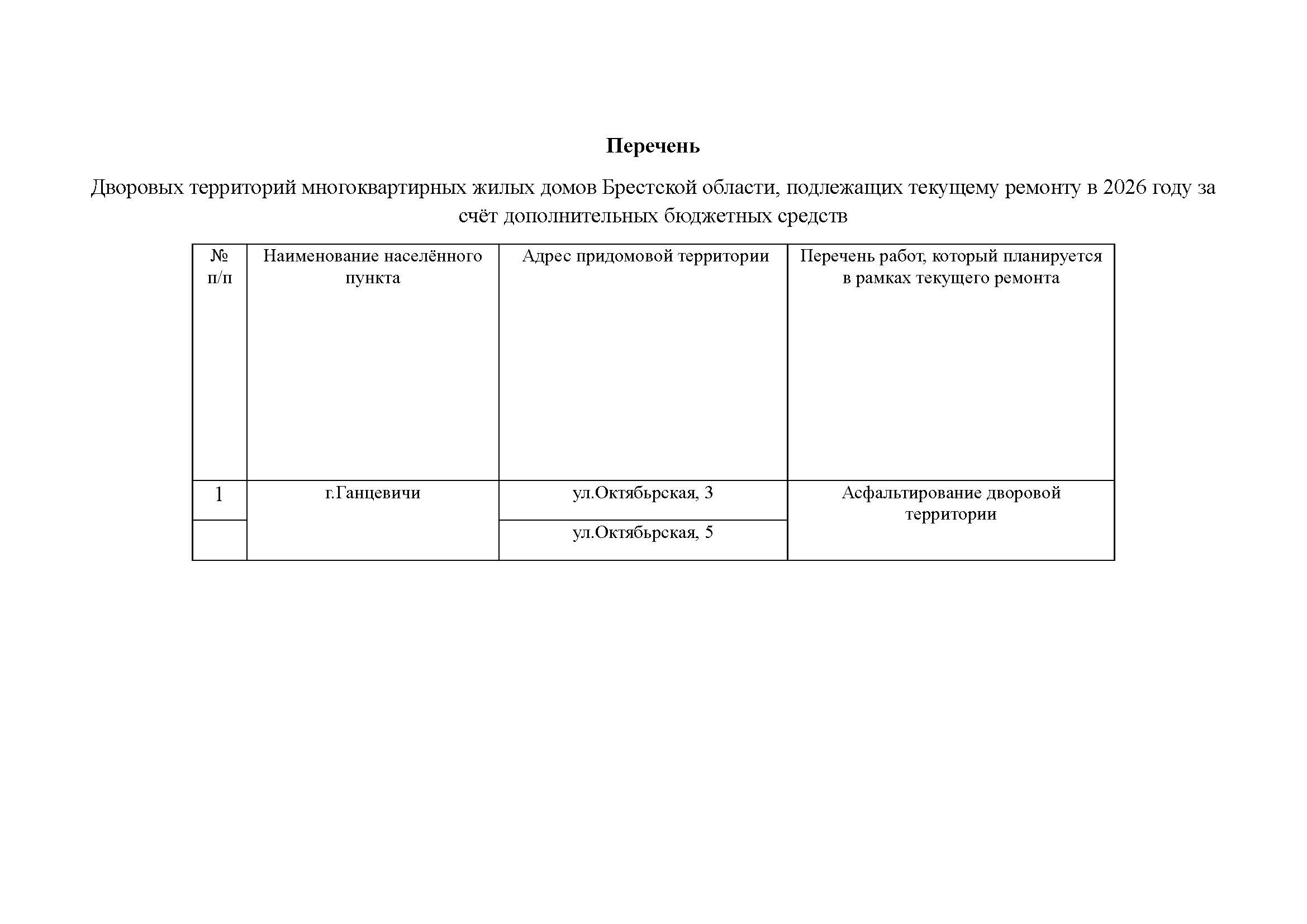 -строительство водопроводной сети в д. Любашево Ганцевичского района. В 2022 году получено решение о разрешении проведения проектно-изыскательских работ и строительства объекта. Финансирование проектно-изыскательских работ осуществляется за счет средств кооператива индивидуальных застройщиков д. Любашево.