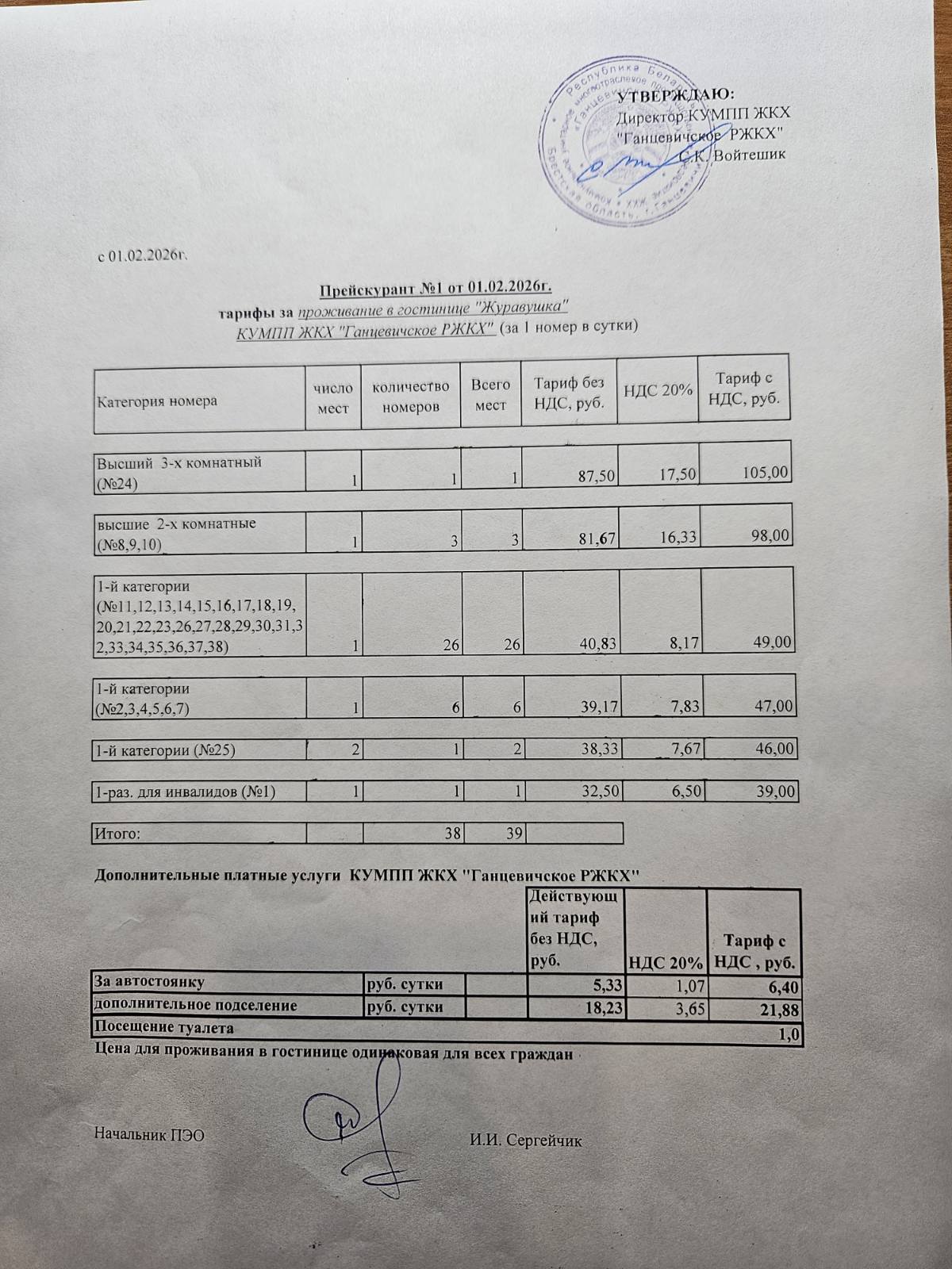 Тарифы по гостинице «Журавушка»